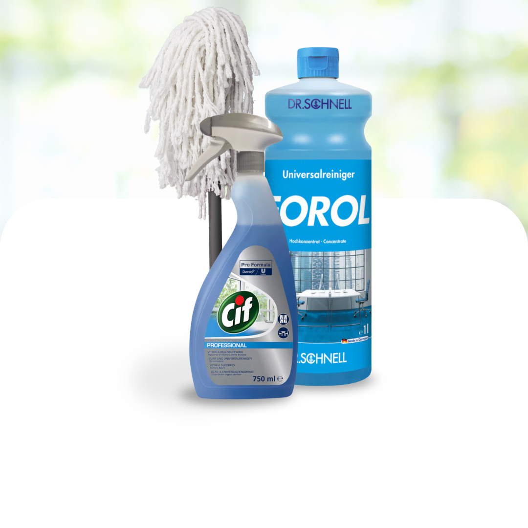 - Fensterreiniger: Sorgt für streifenfreie Klarheit auf Glasflächen.