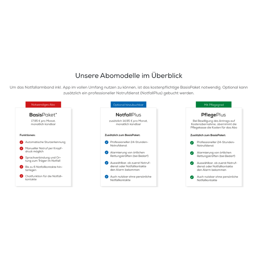 • Configurare simplă și imagine de ansamblu datorită aplicației „Caera” (aplicația este gratuită, dar pentru a putea utiliza brățara, cel puțin pachetul de bază trebuie rezervat) trebuie rezervată)