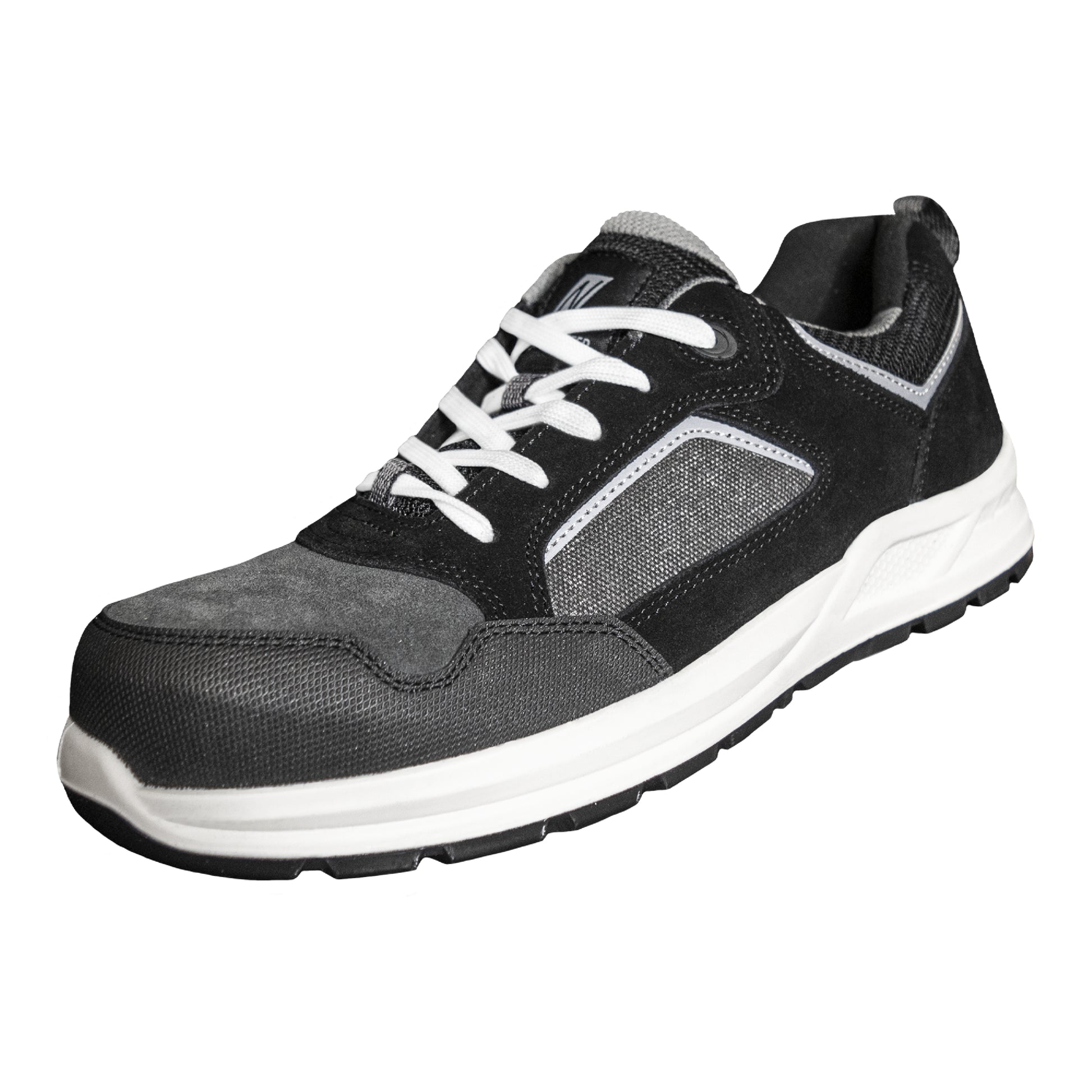 NITRAS CLASSIC STEP, pantofi de siguranță, S1 P, piele de căprioară durabilă, talpă durabilă din PU / PU, gri/negru (cod culoare: 1210), vârf din fibră de sticlă, talpă intermediară rezistentă la perforare din material textil, fără metal, branț COMFORT STEP de înaltă calitate, formă ergonomică, design sportiv, cea mai bună lățime posibilă, elemente reflectorizante, 11, RC