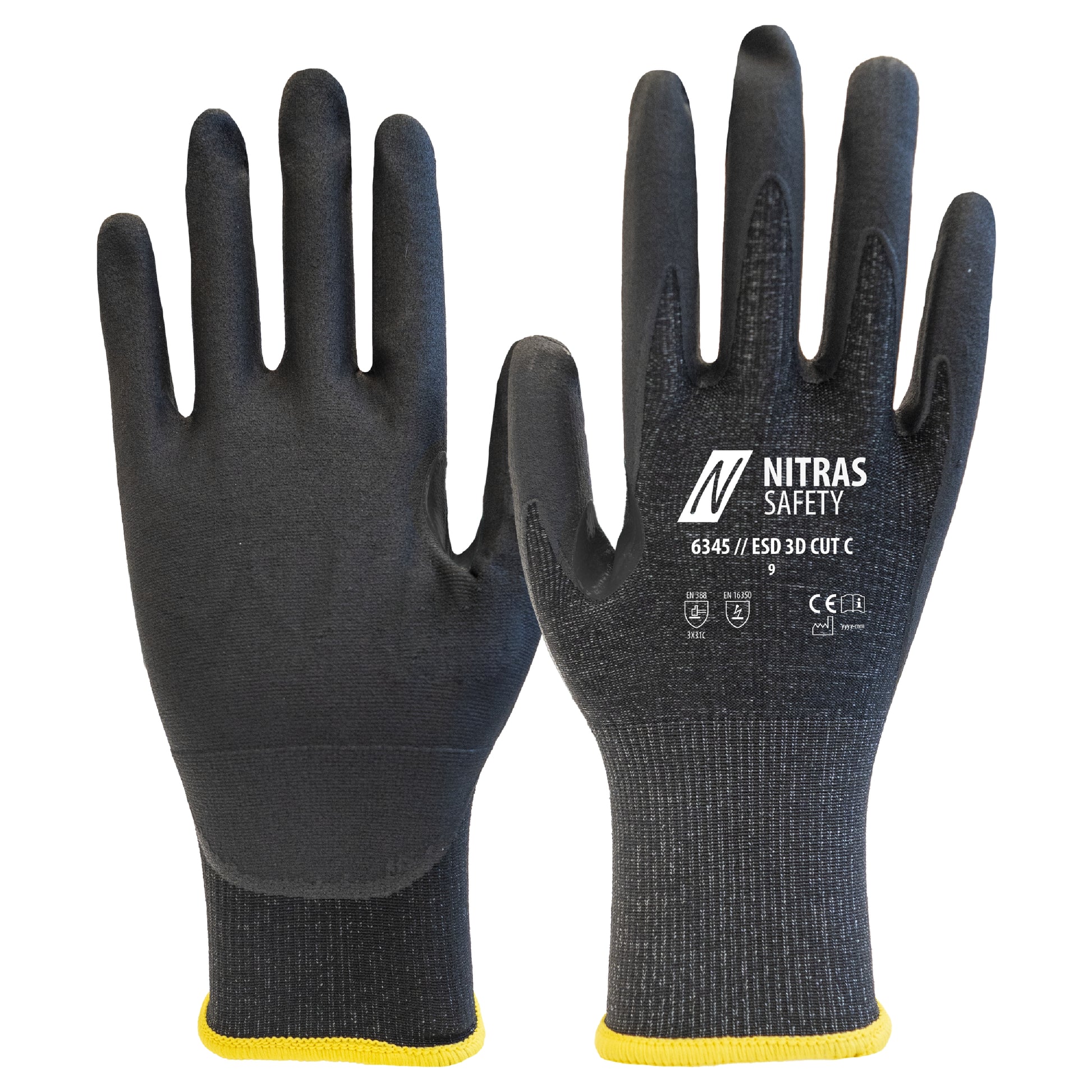 Mizați pe siguranță maximă, confort și versatilitate cu mănușile de protecție împotriva tăieturii NITRAS ESD 3D CUT C - alegerea perfectă pentru cerințele profesionale și protecție maximă!